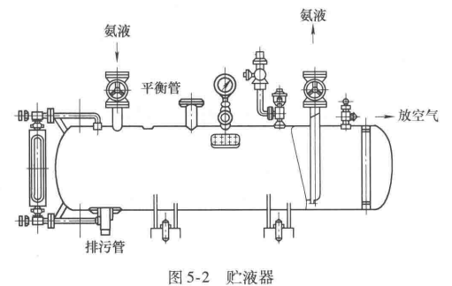 貯液器又稱高壓貯液桶。在制冷系統中是用以調節和穩定氨液循環量,并貯放氫液。貯液器如圖5-2所示。