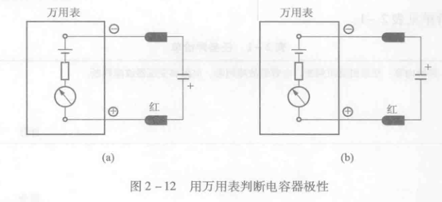 如圖2-12所示。每次測試之前,都要將電解電容器的兩引腳短接放電。