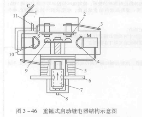 重錘式啟動(dòng)繼電器的優(yōu)點(diǎn)是結(jié)構(gòu)緊湊、體積較小、可靠性強(qiáng);其不足是可調(diào)性差,若電源電壓波動(dòng)較大,則會(huì)出現(xiàn)觸點(diǎn)不能釋放的現(xiàn)象或因觸點(diǎn)接觸不良而導(dǎo)致故障。該啟動(dòng)繼電器在使用時(shí)一定要使其直立安裝,以保證工作可靠。