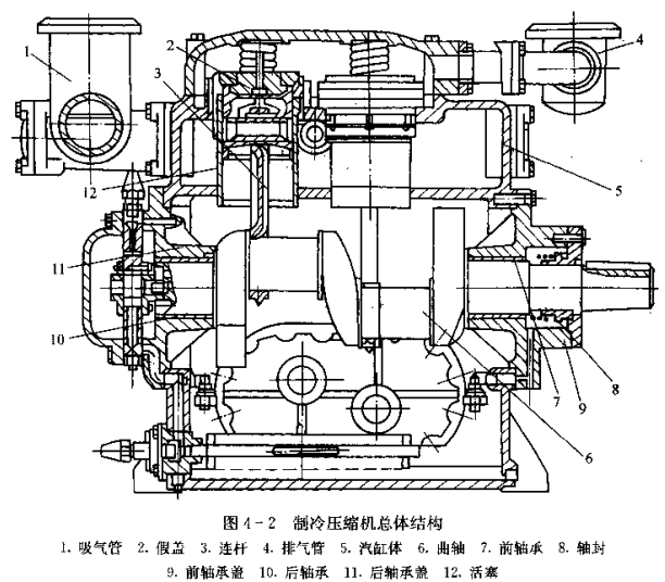 如圖4-2為某型號活塞式制冷壓縮機總體結構圖。