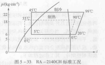 圖5-33所示為RA-2140CH熱泵空調器制冷、制熱兩個標準工況,由圖5-33所示,及時增加了制熱毛新館,蒸發溫度也只能降到0℃左右,在室外低溫時,換熱器因結霜嚴重而無法正常進行熱交換,因此,熱泵型窗式空調器供熱時溫度在5℃以上,才能達到正常的供熱量,有些熱泵空調器在室外換熱器側裝有管狀電加熱器,以提高室外側溫度,使熱泵型空調器得以在環境溫度為-5℃仍能正常工作,這類窗式空調器被稱為熱泵電熱輔助型空調器。