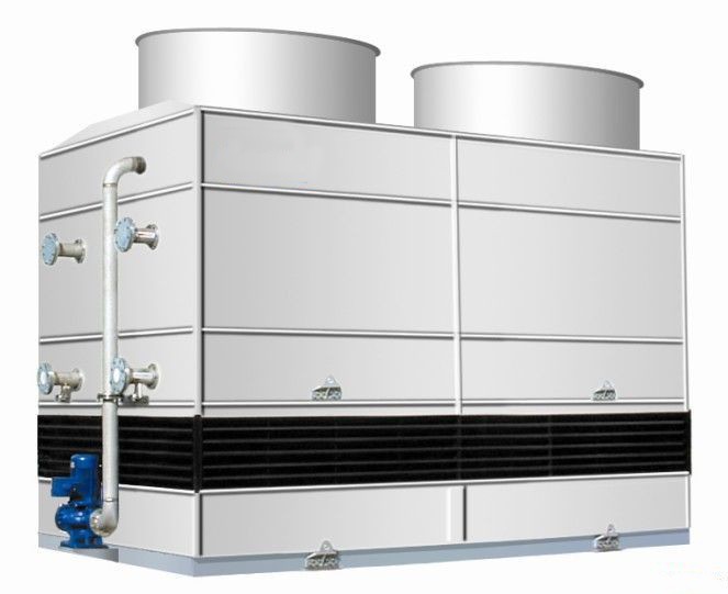 對蒸發式冷凝器的結構,早期有的廠家設計為風和水形成逆向流動的結構。目前大多廠家設計為水和風形成同向流動的結構,冷凝排管與疏水器同時進入干燥的新風,形成雙效冷卻效果,加強水的蒸發,使下部與上部盤管組的氣流呈叉流同時換熱狀態,進一步降低淋水溫度,增強換熱效果,從而降低制冷系統的冷凝壓力;其特殊的結構又保證了噴淋水與空氣間良好的接觸,使冷凝排管周圍始終被水所包容,避免了風水逆向所造成冷凝管下部的水風吹散出現干冷凝現象;同時,風水同向結構水流速加快,還能有效阻止冷凝排管的結垢。