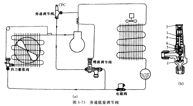 自動旁通閥也稱為“旁通能量調(diào)節(jié)閥”如圖6-73所示。用于不具備卸載機構(gòu)的中小型壓縮機系統(tǒng)內(nèi)。