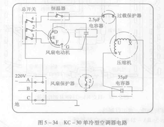 當(dāng)室內(nèi)溫度達(dá)到預(yù)定溫度時,由溫控器自動切斷壓縮機(jī)電源,壓縮機(jī)停;當(dāng)室溫回升時,溫控器又接通電源,壓縮機(jī)又運(yùn)轉(zhuǎn)制冷,在空調(diào)器工作時,風(fēng)機(jī)始終在運(yùn)轉(zhuǎn)。