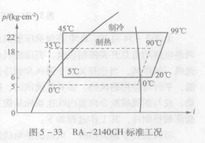 熱泵型窗式空調器的制冷系統如圖5-32所示。圖5-32中實線方向是制冷時制冷劑的流向,虛線方向是制熱時制冷劑的流向,依靠換向閥轉換。單向閣的作用是使制冷劑在制冷時不經過制熱毛細管。由于制冷劑流向可以通過四通電磁換向閥轉換,因此;熱泵型空調器既可以像單冷型那樣制冷,也可以制熱。圖5-33所示為RA-2140CH熱泵空調器制,冷、制熱兩個標準工況。