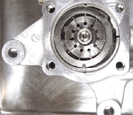 3、閥片斷裂后落在汽缸中。壓縮機吸、排汽閥片因局部斷裂落入汽缸。活塞往復移動時,閥片碎片在閥板和活塞中間互相撞擊,發出“嗒嗒嗒”響聲。可以從吸、排汽壓力表指針是否有抖動現象作出初步判斷,最后還是要靠拆下汽缸蓋與閥板查看而定。