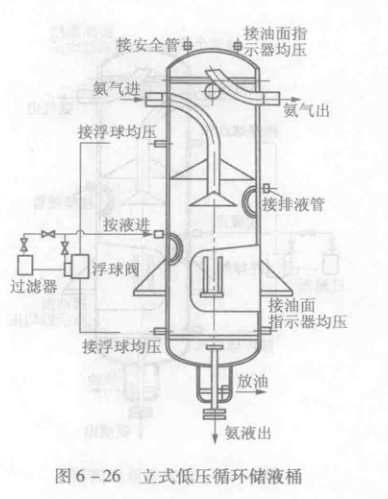 低壓循環儲液桶:低壓循環儲液桶是氨泵供液系統的關鍵設備之一,作用是儲存和穩定地供給氨泵循環所需的低壓氨液,又能對庫房的回氣進行氣液分離,以保證壓縮機的干行程,必要時又可兼作排液桶。低壓循環儲液桶可分立式和臥式兩種。
