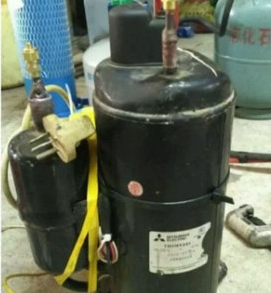 整機保壓檢漏 從壓縮機工藝管處將工藝管剪開,如果投有制冷劑噴出或有少量臨沂制冷劑滋出,則可以初步判斷為制冷系統(tǒng)內(nèi)制冷劑泄漏。或在低壓回流管處接一塊檢修閥,同時在高壓端處充入12MPa干燥氮氣并接下鎖口。24小時保壓檢漏,壓力有下降則說明制冷系統(tǒng)內(nèi)制冷劑泄漏。