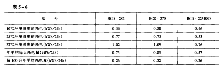 根據(jù)計算,在38℃環(huán)境溫度時傳入冷藏室的熱量大約是10℃環(huán)境溫度時的6倍,即在38℃時要保持冷凍室溫度為-18℃時所需要的制冷量僅是10℃的2倍。由于單循環(huán)制冷系統(tǒng)冷藏冷凍室的制冷量按各自蒸發(fā)器大小進(jìn)行自然分配,并且只受冷藏室溫控器控制,所以在保持冷藏室溫度為5℃情況下,在高環(huán)溫時就會出現(xiàn)冷凍室過冷現(xiàn)象,壓縮機(jī)運行時間增長以致出現(xiàn)不停機(jī)。相反在低環(huán)溫時則會出現(xiàn)不開機(jī)現(xiàn)象,以致冷凍室過熱。因此,單循環(huán)制冷系統(tǒng)冰箱在低環(huán)溫時必須打開冷藏室加熱器,來促使冷藏室盡快達(dá)到開機(jī)溫度。 雙循環(huán)制冷系統(tǒng)則避免了以上單循環(huán)制冷系統(tǒng)的缺陷。根據(jù)冷藏室和冷凍室的具體需要,電子溫控器將通過控制電磁閥將制冷量送到需要的室去。所以避免了環(huán)境溫度對冷藏室、冷凍室內(nèi)溫度的影響,實現(xiàn)了能量的最佳分配和利用。表5一6為3種冰箱在不同環(huán)境溫度下的耗電量比較。