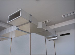 風管的加工:風管的加工要滿足設計要求。風管一般采用分段加工的方法,每段風管長宜為1.8~4m。為提高風管鋼性,一般需要在管壁壘外側采用加強筋,風管一般采用法蘭連接,中間加3mm石棉墊片,以防漏風。目前還普遍使用密封膠和膠帶紙對接頭部分進行密封。