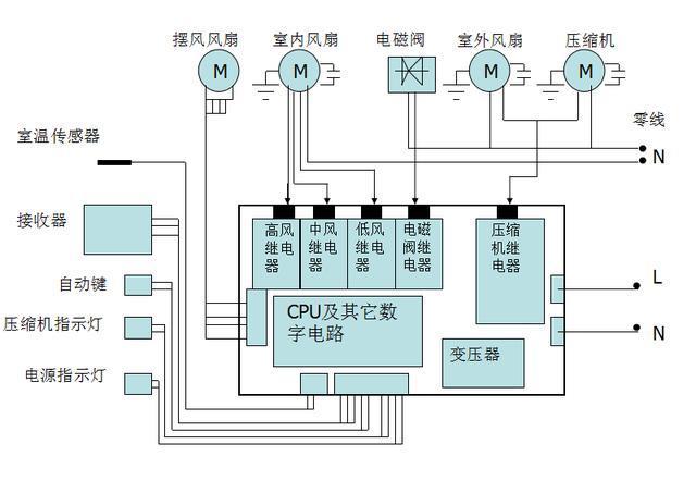 空調器有一套完善的電氣控制系統,它包括啟動與關閉裝置、功能選擇裝置、安全保護裝置、自動恒溫調節裝置等。老式空調器的電控系統為強電控制,大多為機械控制型。其缺點是控制精度差、自動化程度低、控制功能少,除恒溫自動控制及延時控制外,其余都是人工操作控制。新式空調器的電控系、間歇開停除濕控制;經濟制冷控制;睡眠功能控制;熱泵自動融霜功能控制以及紅外線遙控等。空調器的電氣控制系統按照所使用的控制電器或元件的特點,可分為有觸點控制系統和無觸點控制系統。