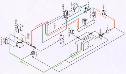壓縮機吸入來自蒸發器的于蒸氣,經壓縮后其壓力升高,被排出壓縮機進入冷凝器放熱,在這個過程中,高壓高溫蒸氣逐步轉變為高壓高溫液體。即在狀態變化過程中,其排出壓力保持不變(流動阻力除外),其壓力稱為“冷凝壓力”其溫度稱"冷凝溫度"。高壓高溫液體進入毛細管(節流元件)進行降壓(稱節流),流出毛細管的已是低壓低溫的氣液混合體(液體占極大比例)。這時制冷劑已具備了膨脹、吸熱、汽化條件,當它流入蒸發器管內就會大量吸熱而汽化,進入沸騰過程,這時的壓力與溫度也保持不變,稱為“蒸發壓力"和"蒸發溫度"。制冷劑在蒸發器中完成了制冷任務,又變為干車氣,它再進入壓縮機,進行下次的循環工作。制冷劑在制冷系統內如此連續不斷循環流動,并在各部件中進行熱力變化,從而達到連續制冷的目的。