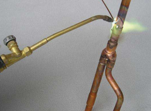 使火焰烤熱銅管焊接處,當(dāng)銅管受熱至紫紅色(約60090 - 65090)時,用銀焊條焊接(銀基焊條或磷鋼焊條)。移開火焰后將焊條靠在焊口處,使焊條溶化后流人焊口內(nèi)即可。但要注意1口的四周和全長都要均勻加熱,要把焊n加到金屬開始溶化的溫度(超熱),超熱將可增加所焊金屬與焊料金屬之間的吸附力(化合物),但這種吸附焊口的質(zhì)量并不利。
