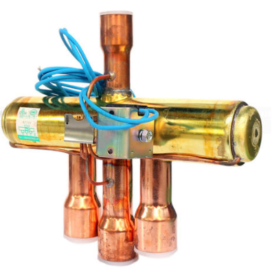 (3)設定在制冷運行狀態而出現制熱運行。東寶KFR-25W型空調器使用多年,曾因室外機銅管震裂、漏氟,曾多次修理。試機制冷時,萬用表測電磁線圈無220V電壓,檢查電源供電電路正常。停機、開機試驗多次,故障依舊。停機檢查四通閥,發現換向閥內部卡死,無法進行換向。更換四通閥,故障排除。