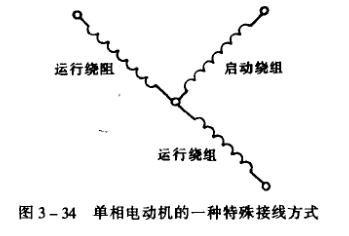 上述規(guī)律并不能適用所有的全封閉壓縮機,有的產(chǎn)品RCS>RCR,有的產(chǎn)品RCS=RCR,還有的產(chǎn)品由于接線方式的不同,不能用一般規(guī)律去判斷主、副繞組,如圖3-34所示的一種接線方式。它的啟動繞組是串接在兩組運轉(zhuǎn)繞組的中點上,因此在接線時一定要按照生產(chǎn)制造廠家提供的接線圖正確連接。