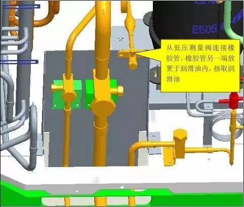 冷凍油可從吸氣關閉閥旁通孔處加入。加油時,先關閉吸氣閥,讓壓縮機運轉幾分鐘,讓吸氣管和壓縮機標殼抽成真空后停機,讓油從旁通孔內吸進去,注意不要將空氣吸進去。抽真空時應先將加油管口用手指閉住,停機后,快速將管口浸入油中放開手指,冷凍油就緩慢地被吸入壓縮機。也可在加油管中間裝一只工具關閉閥,這樣更方便穩定。