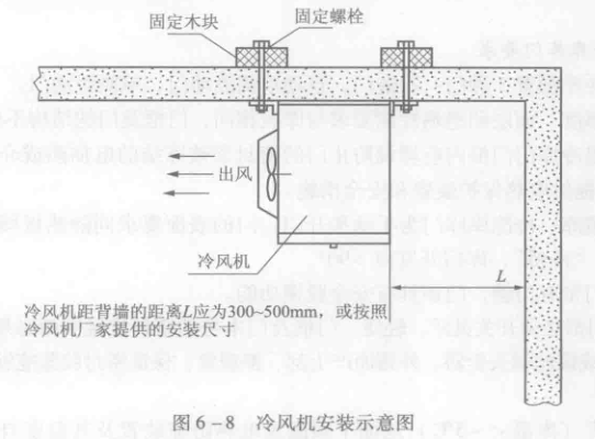 4)冷風(fēng)機和背墻之間的距離為300~500mm,或按冷風(fēng)機廠家提供的尺寸。