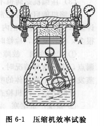 判斷方法如圖6-1所示,關閉吸氣截止閥,讓壓縮機運轉幾分鐘,將曲軸箱內制冷劑排入冷凝器中,停機并立即關閉排氣截止閥,在吸、排氣截止閥的旁通孔各裝上高、低壓力表,再開機,旋松吸氣截止閥旁通孔接管的接扣(見圖中的A處),讓空氣緩緩吸入壓縮機,使壓縮機的排氣腔內壓力慢慢上升。升至一定壓力(一般為98OkPa),旋緊接扣停止吸入空氣,并讓壓縮機繼續運轉幾分鐘停機。停機10min后,看低壓真空度回升情況,若10min內高、低壓力平衡了,說明閥板有嚴重,滲漏,需拆檢修理。然后再作980kPa壓力的充氣工作,并繼續運轉,根據吸氣壓力下降值(一般降為66. 66kPa的真空度)來判斷壓縮機的效率。若吸氣壓力達不到要求數值,說明這臺壓縮機效率很低,需拆檢修理.若吸、排氣壓力能達到數值要求,壓縮機還可使用。