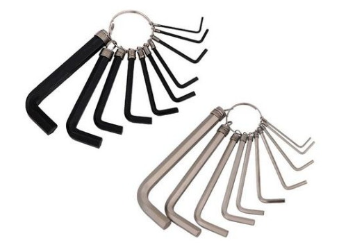內六方扳手 用來打開和關閉二通閥、三通閥閥芯。最常用的是4mm和5mm的內六方扳手,根據實際情況.某些老式空調器使用8mm或10mm的內六方扳手,而拆除室內風機與貫流風扇固定螺釘時需要用到2.5mm的內六方扳手,所以建議配備一套。具體為1. 5mm, 2.5mm, 3mm, 4mm, 5mm, 6mm, 8mm, 10mm,共8件。