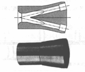 (1)文丘里型。如圖2-38所示,氣液混合的制冷劑從進口進入后,先輕微收縮,速度增加,壓力減小,到達最窗處時達到最達最大值,之后減速擴壓,像噴嘴一樣,制冷劑噴人分配管內,因為壓力較大,制冷劑流速也較快,所以比較均勻。