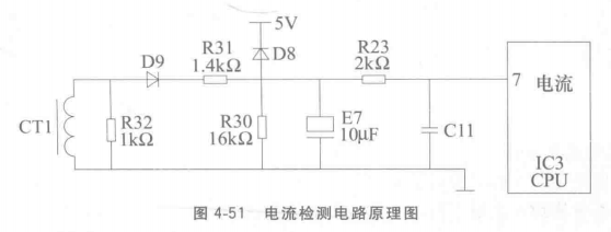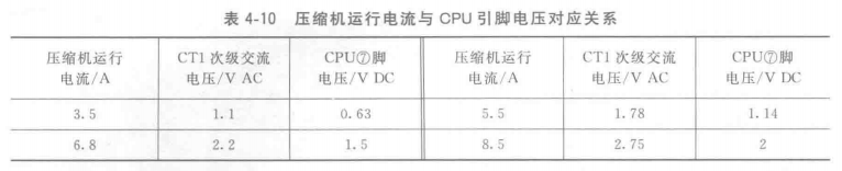 工作原理 電流檢側電路原理圖見圖4-51,濟南壓縮機運行電流與CPU引腳電壓的對應關系見表4-10。