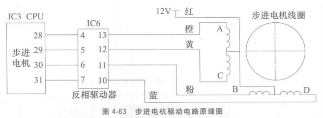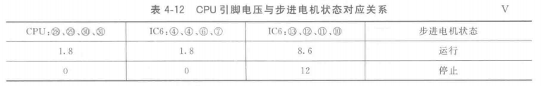 步進電機驅(qū)動電路原理圖見圖4-63。CPU引腳電壓與步進電機狀態(tài)的對應(yīng)關(guān)系見表4-12。