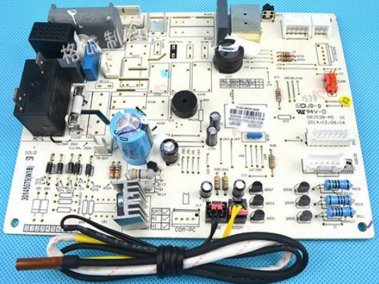 通用板的主要接線端子 共設(shè)有電源相線L輸入、電源零線N輸入、變壓器、室內(nèi)風(fēng)機(jī)、濟(jì)南壓縮機(jī)、四通閥線圈、室外風(fēng)機(jī)、步進(jìn)電機(jī)。另外顯示板組件和傳感器的引線均直接焊在通用板上,自帶的室內(nèi)風(fēng)機(jī)電容容量為1μF。