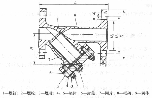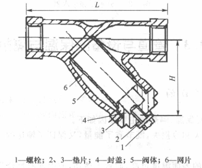 過(guò)濾器有立式直通式、臥式直通式、臥式覺(jué)通式及Y形過(guò)濾器。工程上常用的是Y形過(guò)濾器,它具有外形尺寸小、安裝清洗方便的特點(diǎn)。濾芯采用不銹鋼制成,把水中雜質(zhì)收集起來(lái),用人工以不定期方式清除。Y形過(guò)濾器有兩種連接方式:螺紋連接和法蘭連接,如圖3-20和圖3-21所示。