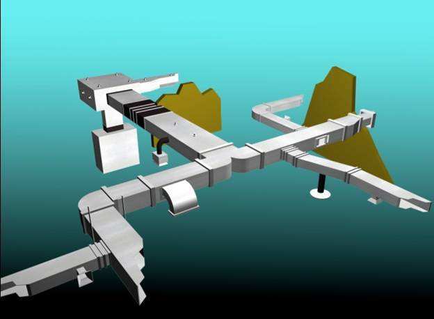 (3)增加送風靜壓箱、管道、風口等造價。對于體積較大的通信機房,為了空調(diào)送風均勻,需要增加送風管,機房上部因通信走線橋架、空調(diào)風管、照明燈具等的布置,顯得比較雜亂,沒有下送風方式機房整齊美觀。