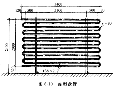 這種盤管結構簡單,制造方便,但是它最大的缺點是沸騰所產生的氣體不能很快地從蒸發器中分離出去,要經過排管全部長度后,才能分離。因而它的傳熱系數不大。同時排管中容氨量、容氟利昂數量較大。