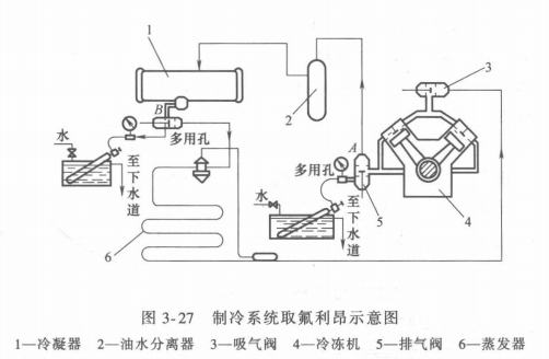 完全關(guān)閉壓縮機(jī)的排氣截止閥,使系統(tǒng)內(nèi)的制冷劑全部由旁通孔排入鋼瓶。這時(shí),必須要連續(xù)地向鋼瓶澆冷卻水,保證及時(shí)散熱。其排氣壓力應(yīng)不超過(guò)1.472MPa(表壓)。