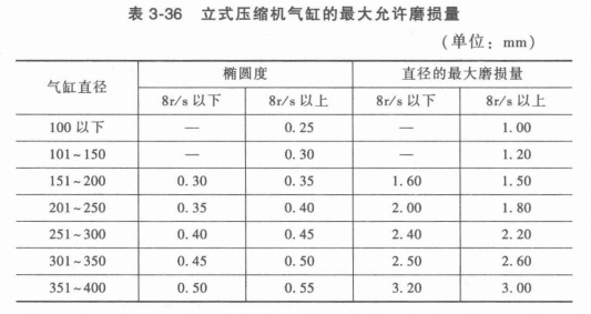 國產(chǎn)非系列的不同轉(zhuǎn)速的制冷壓縮機(jī)的氣缸最大允許磨損量見表3-36。