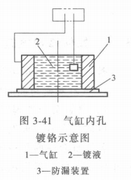 當氣缸孔徑磨損較大,或經幾次修理后缸徑擴大,無法再錘孔或晰磨時,可采用鍍鉻方法進行修理,如圖3-41所示。鍍鉻適用于磨報不大于0. 5mm的氣缸。鍍鉻層最適合的厚度為0.05~0. 15mm。氣缸鍍鉻修理時,一般采用多孔性鍍鉻法,操作方法如下:鍍前應使氣缸內孔的圓度及圓柱度誤差符合要求,并徹底清洗,除去油垢。