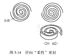 ①徑向“和柔性”密封如圖5.14所示,壓縮機(jī)的轉(zhuǎn)子渦盤(pán)與定子渦盤(pán)一般情況下通過(guò)十字聯(lián)接環(huán)葉合,并通過(guò)一定數(shù)量的嗎合點(diǎn)實(shí)現(xiàn)徑向的密封。而此傳動(dòng)機(jī)構(gòu)中,適當(dāng)留有“游隙",使渦旋轉(zhuǎn)子在正常情況下,由于平衡塊離心力的作用,與定子實(shí)現(xiàn)密封嚙合。當(dāng)有雜質(zhì)或液體制冷劑被吸入時(shí),則由于“游隙”的存在,使轉(zhuǎn)子出現(xiàn)平面位移,和定子的嚙合出“現(xiàn)縫隙,轉(zhuǎn)子向一側(cè)與定子分離而避免了發(fā)生雜質(zhì)磨損和液體的“濕壓縮”的可能性。此種結(jié)構(gòu)使停機(jī)時(shí)兩渦旋體稍有脫離,實(shí)現(xiàn)卸載起動(dòng)。