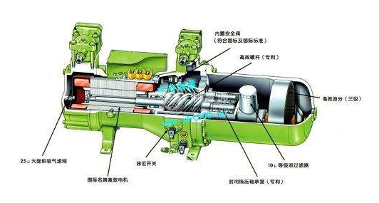 以壓縮機(jī)的吸氣端座為底,并在其下墊上木塊,豎直放置。①拆下壓縮機(jī)螺母。②拆下定位銷釘和六角螺釘后,用兩只吊環(huán)螺釘對稱地旋入排氣端座的螺孔內(nèi),水平吊起,并放在平臺(tái)上,然后用專用工具拉出軸承,取下調(diào)整塊。③用吊環(huán)螺栓旋入主動(dòng)轉(zhuǎn)子陽螺桿,慢慢地吊出,此時(shí),從動(dòng)轉(zhuǎn)子陰螺桿就會(huì)跟隨轉(zhuǎn)動(dòng),使主動(dòng)轉(zhuǎn)子旋出。④在拆下與吸氣端座相連的螺釘和銷釘后,可用兩只吊環(huán)螺釘對稱旋入機(jī)體,這樣就可吊離機(jī)體,然后取下滑閥組。⑤取出擋圈后,可用螺旋工具將滑動(dòng)軸承拉出。然后再拆下止推軸承。⑥拆卸潤滑系統(tǒng)的部件。