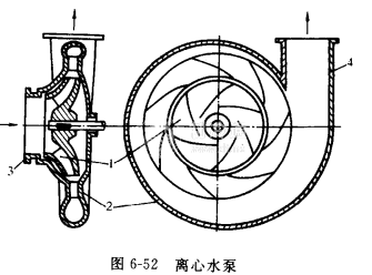 工廠內常用的水泵是一種單面吸水的單工礦內常用的水泵是一種單面吸水的單程離心水泵, 這種水泵有很高 轉速與效率,并且體積小重量輕 ,圖6-52是離心水泵的構造示意圖。水泵的選用是由水的流量和輸送的揚程-來決定的。揚程如果用H表示,則: