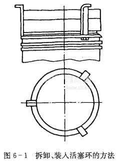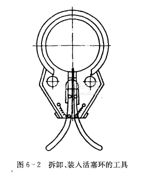 ③圖用專用工具拆卸汽環和油環,如圖6-2所示。