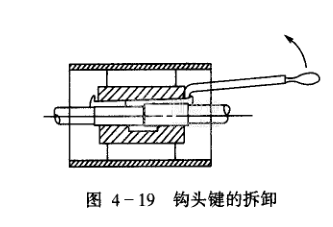 部件的構造較特殊時可使用鉤頭鍵,它也是斜鍵的一種,拆卸方法如圖4一19所示。