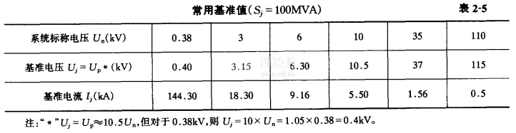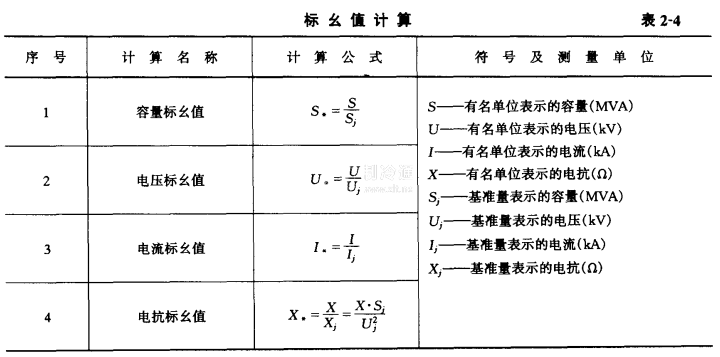 標幺制 標幺制是一種相對單位制,電參數的標么值為其有名值與基準值之比,其計算公式見表2-4。公式中的基準容盤可以任意選定,但為了計算方便,一般取100MVA,常用的基準值見表2-5。