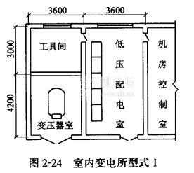 1.單臺變壓器,無高壓配電室的室內變電所布置如圖2-24所示。適用于采用低壓計量的小型冷庫。