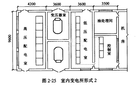 2.雙臺變壓器的室內變電所布置圖如圖2-25所示。