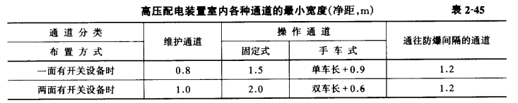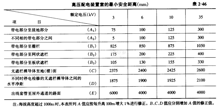 B.室內配電裝置的各種安全距離(凈距)不應小于表2-46中的數值。