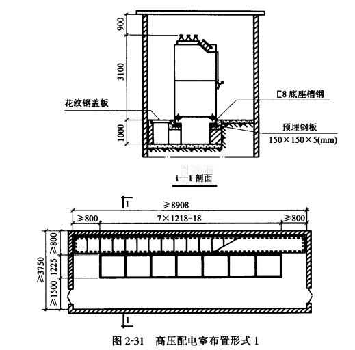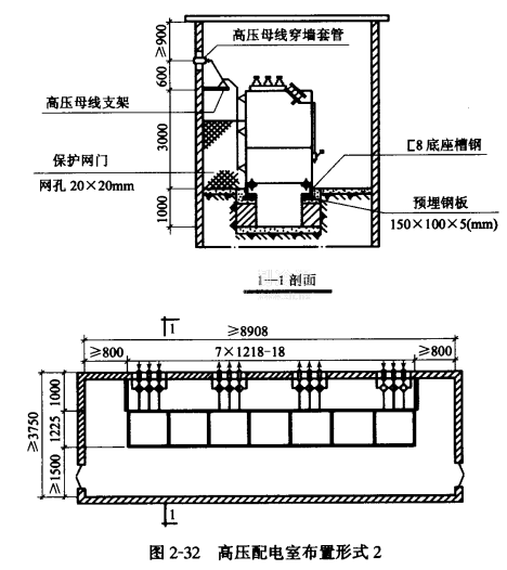 G.高壓配電室應該有向外開的門,當高壓配電室的長度超過7m時,應該有兩個出口(開2個門),并宜布置在高壓配電室的兩端,以便于事故時,工作人員的退出,當高壓配電室布置在樓上時,它的第二個出口可以通向有消防梯的陽臺。