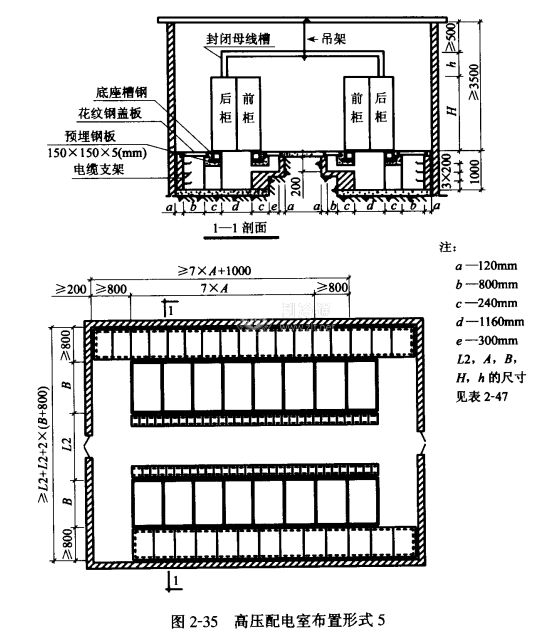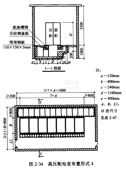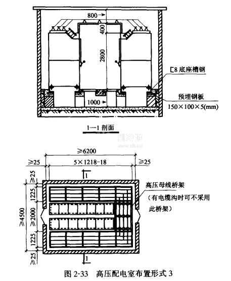 B.手車式高壓開關柜布置方案見圖2-34~圖2-35。