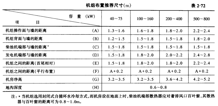 6.發電機在室內的安裝,其外廓與墻壁的距離應滿足表2-72的要求。