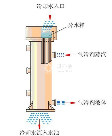 為保證制冷裝置的安全運行,冷凝壓力不能超過設定值,冷凝壓力高過設定值,則說明水量不足或水溫偏高,影響氨氣在冷凝器內冷卻為液體的效果。而且會導致壓縮機消耗功率增加,引起電機過載,設備受損。冷凝壓力低雖然能改善壓縮機的運轉工況,增加產冷量,降低單位產冷量的電耗。但是冷凝壓力過低也不好,節流閥前后壓差小,可能導致蒸發器供液不足,也影響熱氨沖霜效果。因此,要使冷凝壓力保持一定值,自動調節冷凝壓力是很必要的。冷凝器種類不同,調節方法亦不相同。