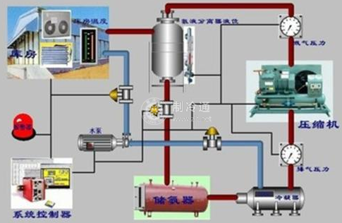 熱氨融霜 凍結物冷藏間大多采用光滑墻排管或頂排管,以掃霜為主,只有庫房貨物出盡后才采用熱氨融霜。由于熱氨融霜不經常使用。一般采用手動控制。