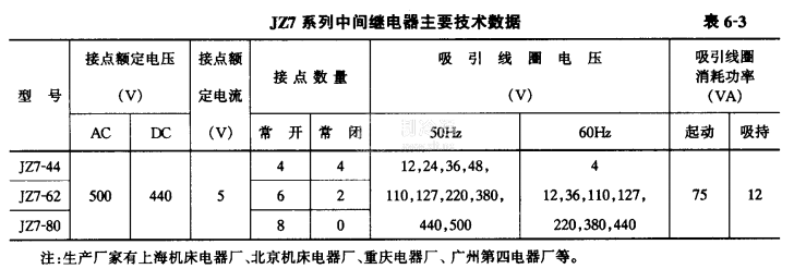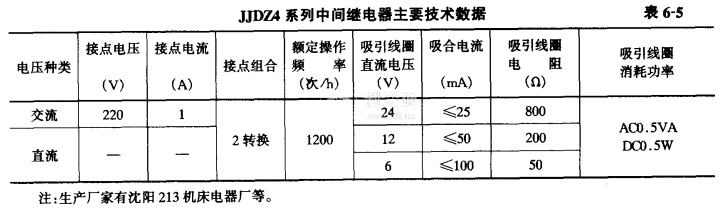 繼電器動作機構為直動式。接點較多,有8對。接點為雙斷點排列成上下兩層。每層各安裝4對觸點。下層接點為常開式,上層接點為常開式或常閉式。繼電器的殼體用塑料壓制而成.結構緊湊,便于接線。主要技術數據見表6-3。