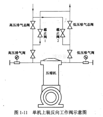 2.單級制冷壓縮機,一是擔負-15℃冷卻系統制冷降溫任務:二是在單機上可裝反向工作閥(如圖1-11所示),當高壓設備檢修前,可將其內制冷劑抽回到低壓系統中去,而不至于放掉浪費。