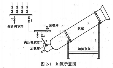 1.按圖2-1所示的加氨示意圖連接好有關閥門。